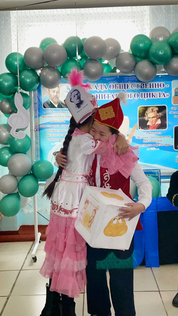 Қоғамдық- гуманитарлық бағыт апталығы аясында қазақ тілі мұғалімдері ұйымдастыруымен қоңырау уақытында оқушылармен "Шаттық кубигі" атты ойын өткізілді. Ойын барысында тапсырмалар орындалып, тәттілер үлестірілді