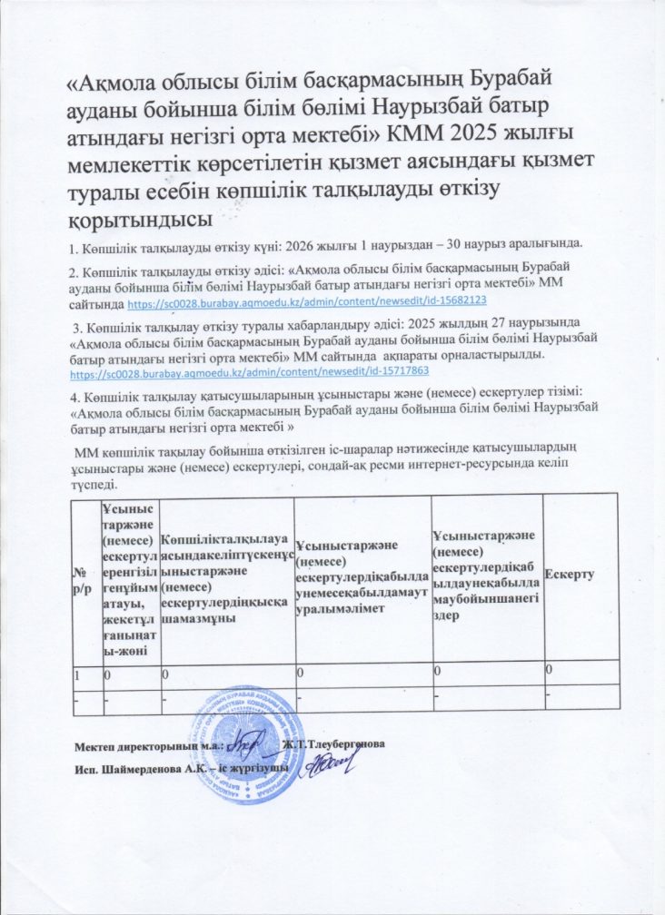 "Ақмола облысы білім басқармасының Бурабай ауданы бойынша білім бөлімінің Наурызбай батыр атындағы негізгі орта мектебі" коммуналдық мемлекеттік мекемесі