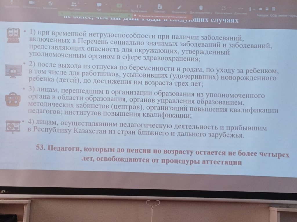 2024 жылдың 11 наурызында педагог кадрларды аттестаттаудың жаңа ережелерінің жобасымен танысу және талқылау бойынша әдістемелік кеңес өтті.