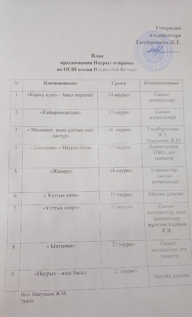 Наурыз мейрамын тойлау жоспары